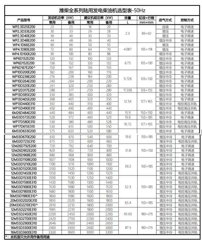 濰柴發(fā)電機(濰柴動力)系列選型表: