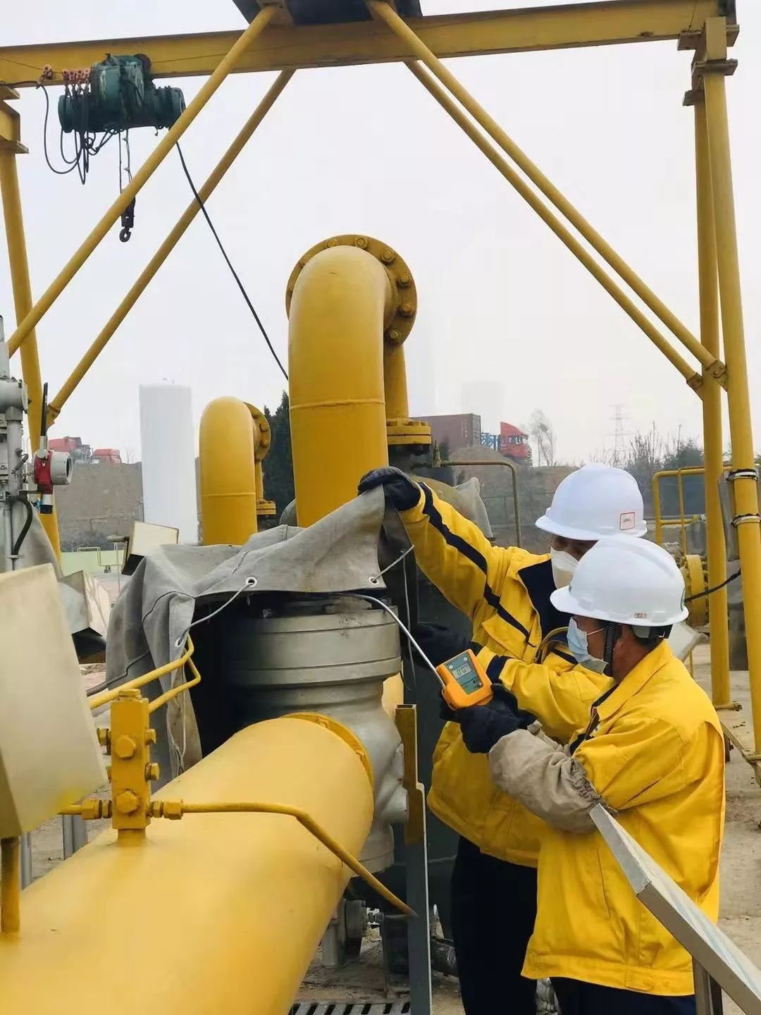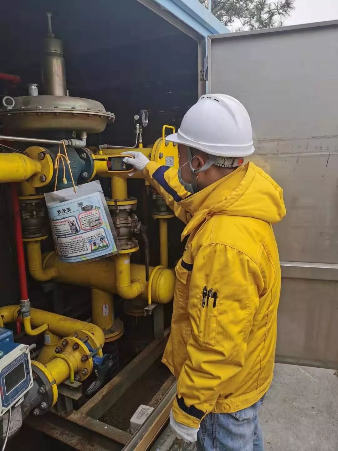 青島新奧能源工作人員在門站次高壓管線檢漏作業