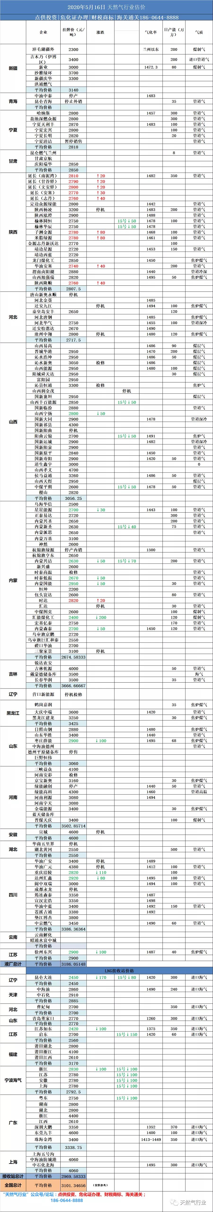 2020.5.16五部委聯(lián)合發(fā)文,推進天然氣儲氣能力建設(shè);今日20余家浮動20-170元/噸