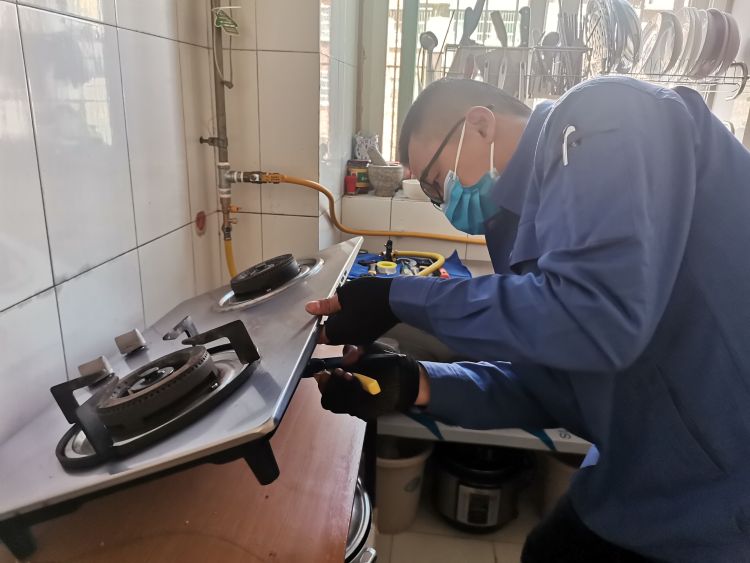 2月22日,淄博華潤燃氣有限公司維修工寧波正在杜科生活區居民家中為其免費更換長壽命金屬軟管。