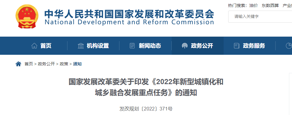 國(guó)家發(fā)展改革委關(guān)于印發(fā)《2022年新型城鎮(zhèn)化和城鄉(xiāng)融合發(fā)展重點(diǎn)任務(wù)》的通知