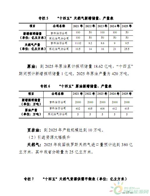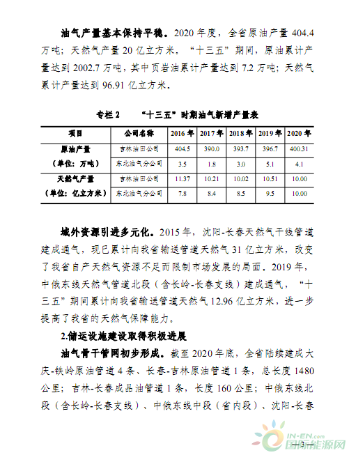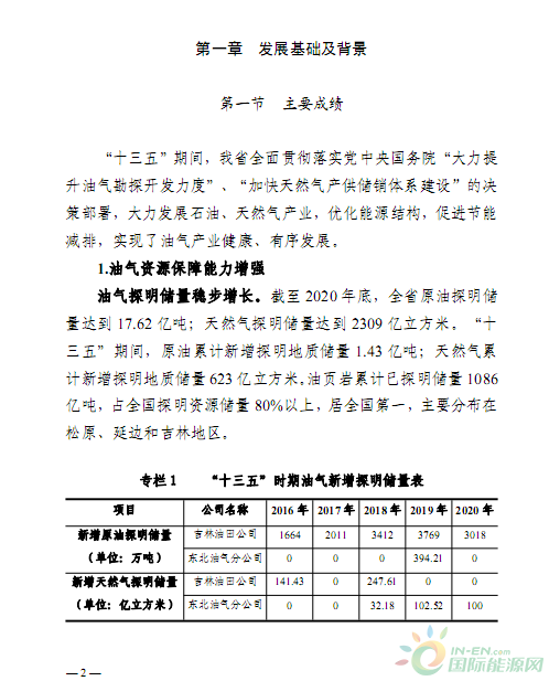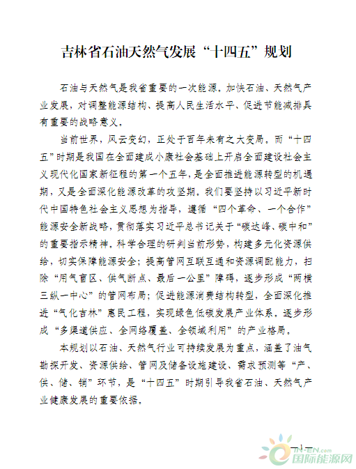 吉林省能源局關于印發《吉林省石油天然氣發展“十四五”規劃》的通知
