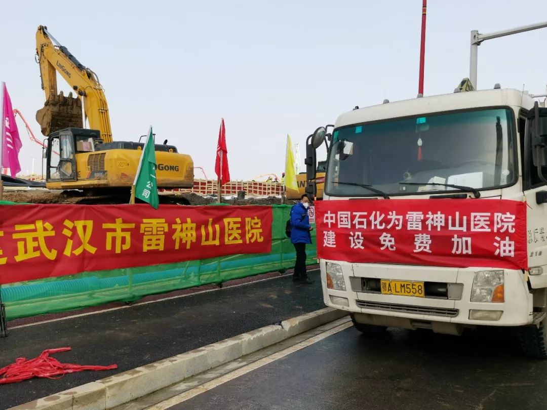 1月30日,中國石化免費向武漢江夏雷神山醫院建筑工地提供16500升柴油和1000桶工程機械潤滑油,保障醫院建設用油。