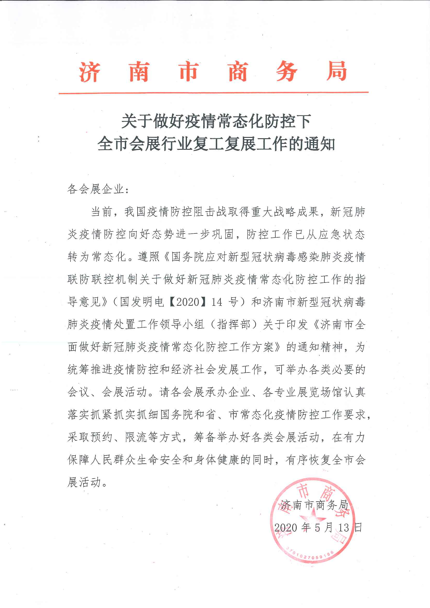 關(guān)于做好疫情常態(tài)化防控下全市會(huì)展行業(yè)復(fù)工復(fù)展工作的通知