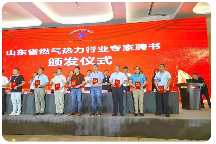 論壇期間,與會領導為參會的山東省燃氣熱力協(xié)會專家?guī)鞂<翌C發(fā)了聘書。