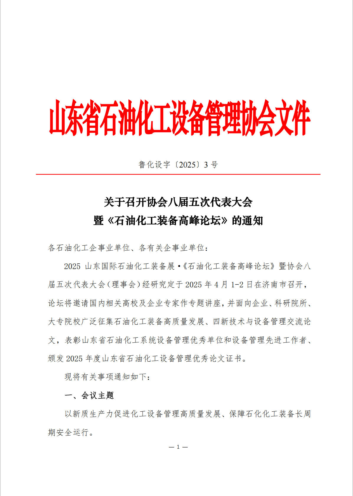 關于召開協會八屆五次代表大會暨石油化工裝備高峰論壇》的通知