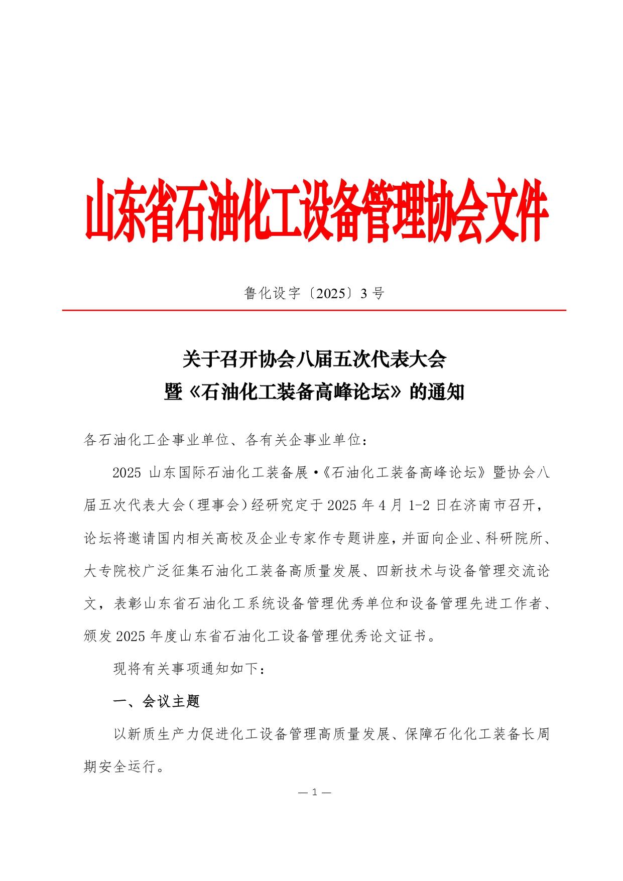 關于召開協(xié)會八屆五次代表大會 暨《石油化工裝備高峰論壇》的通知