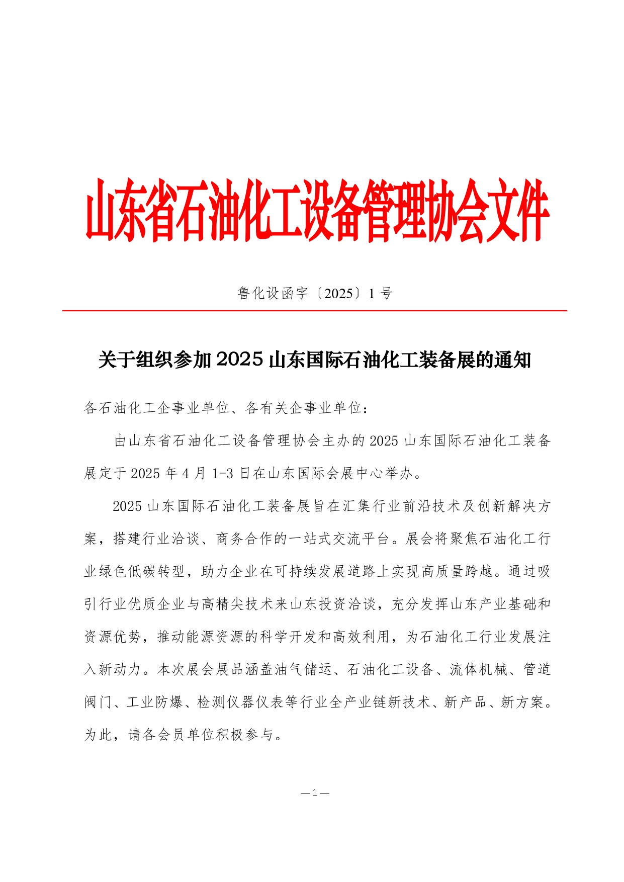 關(guān)于組織參加 2025山東國際石油化工裝備展的通知