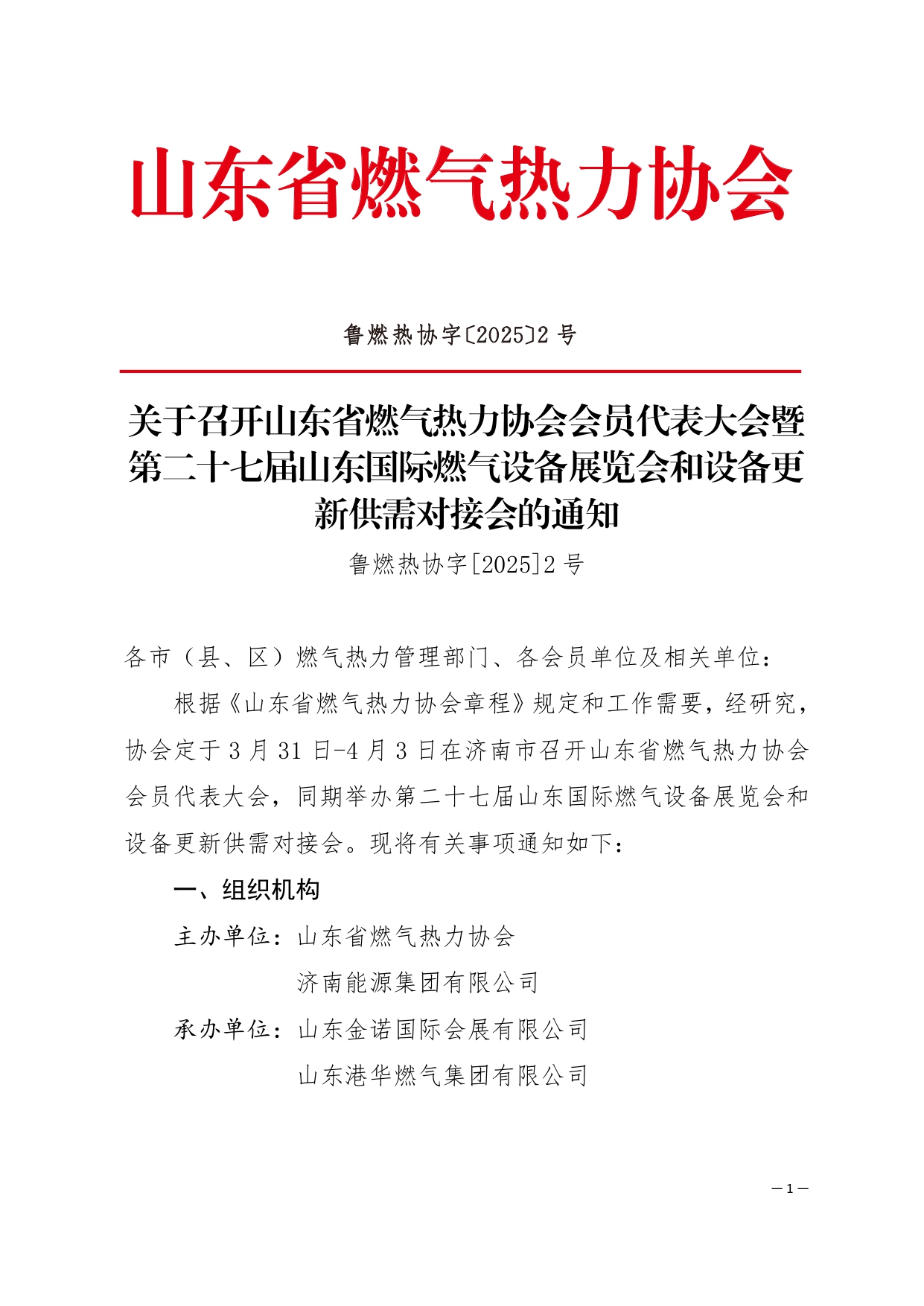 關于召開山東國際燃氣設備展覽會和設備更新供需對接會的通知
